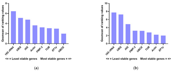 2.7. Assessing Expression Stability of Reference Genes