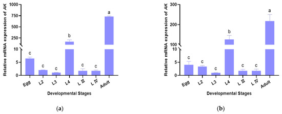 - Kulathunga, D.G.R.S.; Wickramasinghe, S.; Rajapakse, R.P.V.J.; Yatawara, L.; Jayaweera, W.R.; Agatsuma, T. Immunolocalization of Arginine Kinase (AK) in Toxocara canis, Toxocara vitulorum, and Ascaris lumbricoides. Parasitol. Res. 2012, 111, 663–671. [Google Scholar] [CrossRef]