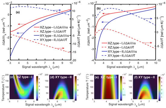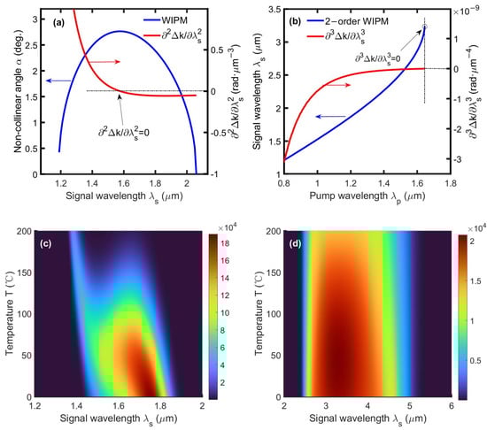 - Zhong, H.; Dai, D.; Dai, S.; Hu, B.; Li, Y.; Fan, D. Comprehensive analyses of the thermal insensitive noncollinear phase-matching for power scalable parametric amplifications. Opt. Express 2018, 26, 23675–23688. [Google Scholar] [CrossRef] [PubMed]