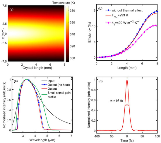 - Rothhardt, J.; Demmler, S.; Hädrich, S.; Peschel, T.; Limpert, J.; Tünnermann, A. Thermal effects in high average power optical parametric amplifiers. Opt. Lett. 2013, 38, 763–765. [Google Scholar] [CrossRef]