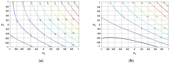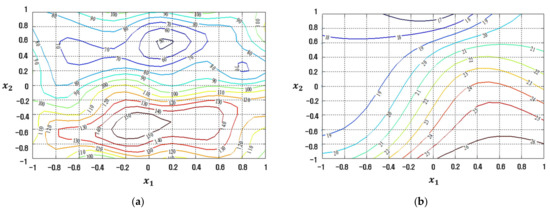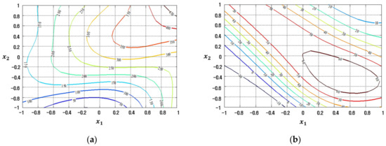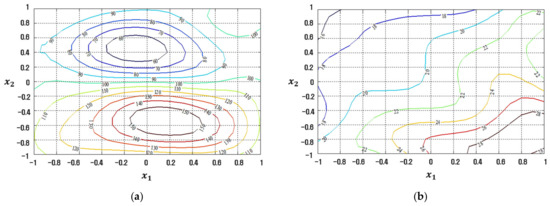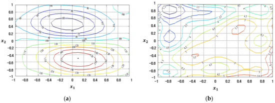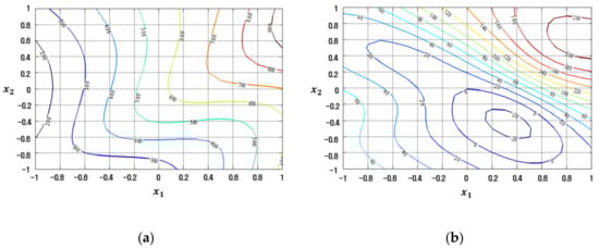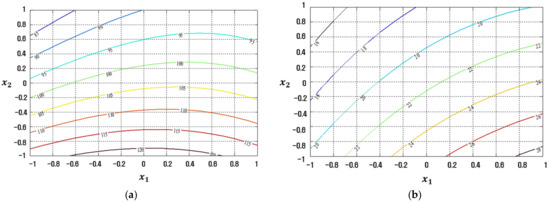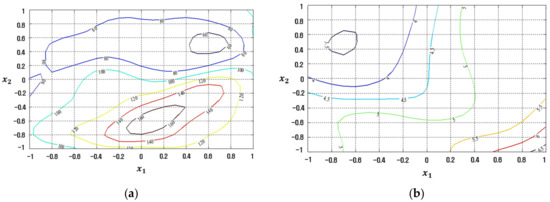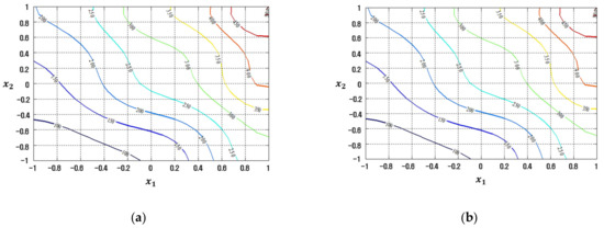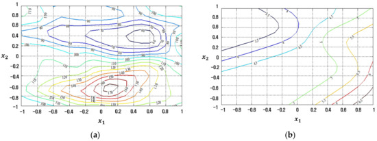 Similarly, detailed information about the multilayer FFNN is given in Table 7 and Table 8, while the weight and bias values of all proposed models for both the process mean and standard deviation functions are summarized in Appendix B (Table A5, Table A6, Table A7 and Table A8). Contour plots of the process mean and standard deviation response values for each model are displayed in Figure 12, Figure 13, Figure 14 and Figure 15, respectively.