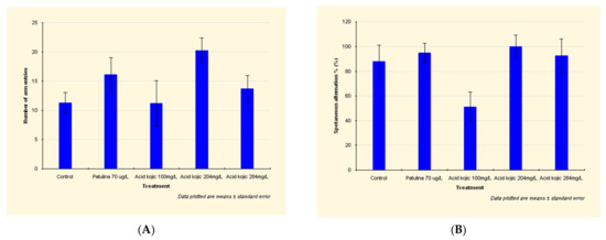 By increasing the spontaneous alternation between the aquarium’s arms, patulin has shown a stimulating effect on spatial memory (Figure 1A).