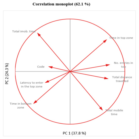 According to the table of main components (PCA), also in the case of the MAZE test, the first two main components represent almost 80% of the variance between the four initial variables, while the first three components represent almost 96% (Table 1).