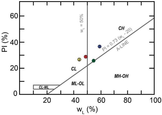 Soil covers sampling, in situ permeability, and density tests were conducted directly on the field following standard procedures [41]. Laboratory tests were also performed in the Engineering Geology Laboratory of the Earth Sciences Department of Sapienza University of Rome on the sampled soil covers to estimate geotechnical parameters and attribute a class of the USCS (Table 1) to each collected sample. In particular, the following tests were carried out: