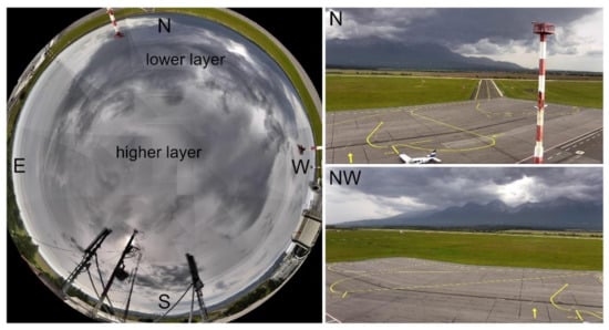 - Wacker, S.; Gröbner, J.; Zysset, C.; Diener, L.; Tzoumanikas, P.; Kazantzidis, A.; Vuilleumier, L.; Stöckli, R.; Nyeki, S.; Kämpfer, N. Cloud Observations in Switzerland Using Hemispherical Sky Cameras. J. Geophys. Res. 2015, 120, 695–707. [Google Scholar] [CrossRef]