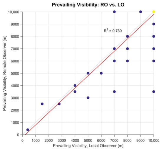 Secondly, the LO and RO data sets were compared and evaluated directly, according to the criteria of the ICAO [1] ‘Operationally desirable accuracy of measurement or observation’. They require the following accuracy for the prevailing visibility:
