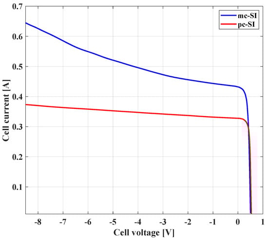 Experimental I–V curves of mc-SI and pc-SI cells.