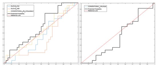 - For lesion analysis, GLRLM-based feature gray-level non-uniformity (GLZLM_GLNU) was selected [,] considering the only PET data set obtaining a Sensitivity 90.11%, Specificity 36.78%, Accuracy 66.72%, and AUROC 56.52% for the predictive DA classifier, while three features (GLZLM_ Zone Length Non-Uniformity—GLZLM_ ZLNU, and GLRLM_Short Run High Gray-Level Emphasis—GLRLM_SRHGE—between the CT features and GLZLM_GLNU between the PET features) were selected considering the PET/CT data set with Sensitivity 78.22%, Specificity 51.75%, Accuracy 66.63%, and AUROC 65.22%;