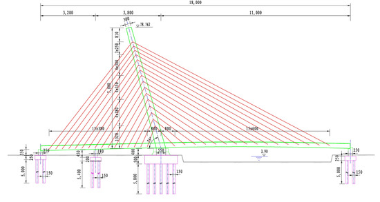As shown in Figure 2, an FEM of the single tower cable-stayed bridge named “Guandu Bridge” is provided as an example to verify the proposed damage identification method. The main physical parameters of this bridge are listed in Table 1. The relations between the element numbers and the node numbers of this bridge are listed in Table 2.