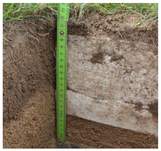 There are 35,993 sport pitches for soccer in Germany [1]. Sport pitches are intensively used and highly maintained. Normally, they are constructed by a layer-by-layer structure, according to the German standard DIN 18035-4 [2]. This structure consists of three layers as described from the top: rootzone, drainage and subgrade. The lowest layer is the subgrade, which consists of the existing subsoil. A drainage layer is installed when the subgrade is water impermeable. The turf grows on the root zone layer. The described construction method is comparable to that of the United States Golf Association (USGA), which is used on golf courses in the United States of America. The USGA drainage layer is made of gravel with a particle size distribution of 65% between 6.4 and 9.5 mm. The high water permeability is necessary to drain excess water from sports surfaces. At the same time, supplying turf grasses with sufficient water is a major challenge for the planning and construction of sports pitches [3]. Therefore, artificial irrigation is necessary.