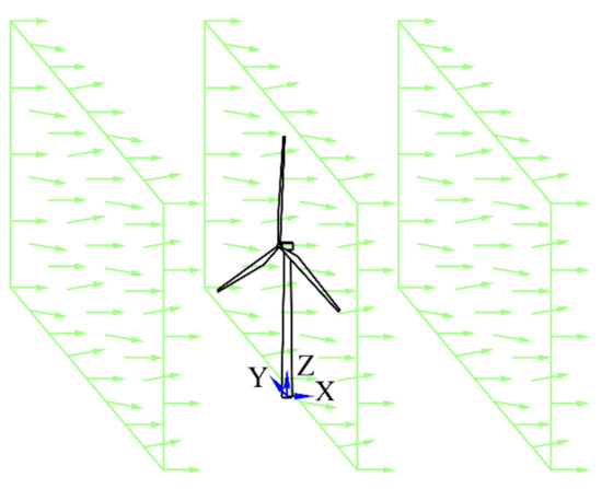 It is very necessary for calculating the wind-induced response of tower and blades to simulate turbulent wind. Because of the statistical characteristic, the load simulation shall be performed based on the turbulent wind model. According to the IEC 61400-1 [38], the turbulence intensity and average wind speed at hub are used to generate the stochastic turbulence wind. Composing by the vertical-wind, across-wind and along-wind components, and the turbulent wind is a three-dimensional turbulent flow. The power characteristics of a turbulent wind field can be described by the power spectrum in related direction.