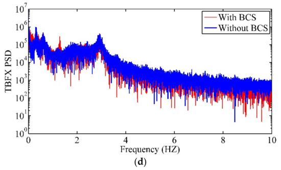 By comparing the mean and maximum values of wind turbine dynamic responses between the two cases, we found that the mean values of the displacement and load components increase with the increase of wind speed in No. 1, while the mean values increase below the rated wind speed and then decrease over the rated wind speed in No. 2, and there are mean values reductions of over 68% in No. 2 at the cut-out wind speed compared to No. 1. The maximum values of the displacement and load components have the same trend with the mean values in the two cases except for the simulation results of tower when the wind speeds are around the cut-in speed. There are maximum values reductions of over 42% in the cut-out wind speed in No. 2 compared to No. 1. To more accurately describe the relationship between the wind speeds and structural dynamic responses when the BCS working, the corresponding fitted curves are carried out and provided, which is helpful to better understand the dynamic features of wind turbine subjected to wind loads during normal operation. In the cut-in wind speed range for No. 2, the 3P of the rotor speed is close to the first tower FA natural frequency, which causes the increase of structural dynamic responses and fatigue loads of the tower when compared to No. 1. By comparing the binned range rainflow cycles of the four load components between the two cases, we found that compared with BFX and BMY, the effect of BCS on the number of rainflow cycles in the high load range on TBFX and TBMY is more obvious. By comparing the COVs and DELs of major load components between the two cases, we found that values of DEL and COV in No. 2 are larger than those in No. 1 in most conditions, especially for TBFX and TBMY around the cut-in speed. In addition, the obvious influence of BCS was clarified by comparing the BFX and TBFX with the azimuth position of the blade and frequency analysis between the two cases for four typical wind scenarios.