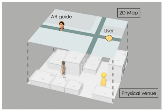 - Lee, C.-I.; Xiao, F.-R.; Hsu, Y.-W. Using Augmented Reality Technology to Construct a Venue Navigation and Spatial Behavior Analysis System. In Proceedings of the 5th International Augmented and Virtual Reality Conference, Munich, Germany, 12–14 June 2019; pp. 161–170. [Google Scholar]