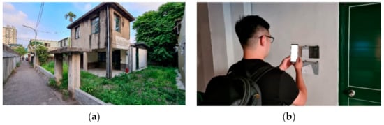 (a) 9 Art Space exhibition building; (b) AR scanning of artwork label.