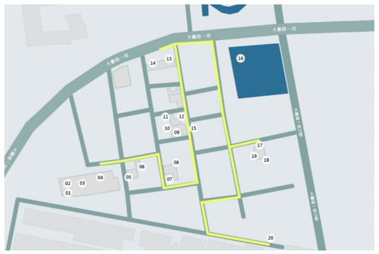 Locations of artworks and suggested route (The numbers in the figure are the artwork numbers).