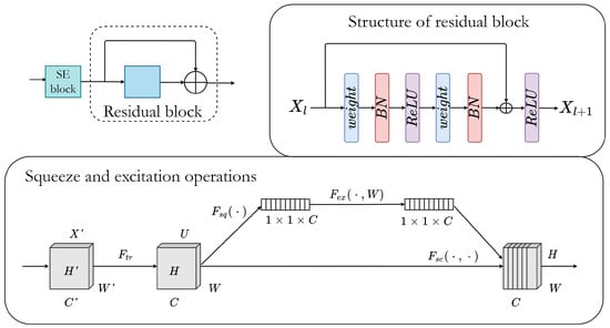 The structure of the residual and squeeze and excitation blocks.