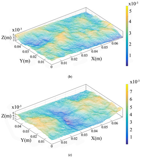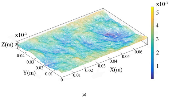Through three-dimensional scanning of these fracture surfaces, a large number of point sets of three-dimensional coordinates can be obtained. Based on these point sets, a visual image of the fracture surface can be obtained (Figure 3), and the joint roughness coefficient (JRC) of the fracture surface can be calculated according to the following formulas [59,60]: