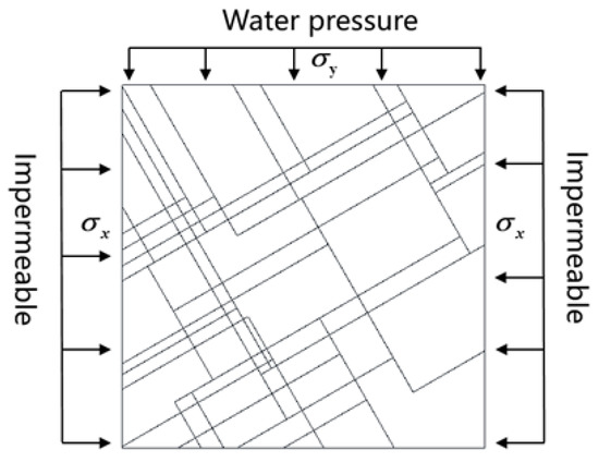 Understanding the hydro-mechanical coupled behavior of a fractured rock mass is crucial for investigation of the rock mass properties encountered in underground engineering, such as in tunnel excavation [1,2,3], reservoir storage [4,5,6,7], and geothermal energy development [8,9,10,11,12,13,14], as well as the safety assessment of high-level radioactive waste repositories [15,16]. The interconnection of the fracture network in the rock mass provides a convenient path for fluid flow and gradually increases the flow capacity of the fractured rock mass. Therefore, fluid flow in fracture networks is important for understanding stability during the construction of rock engineering projects in fractured rock masses.