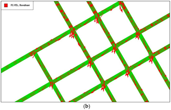 Previous laboratory experiments and numerical simulation results studies showed that the nonlinear flow in a fractured rock mass was mainly caused by inertial force; a larger Reynolds number resulted in a significantly nonlinear flow under a high flow velocity. The critical Reynolds number marked the beginning of the flow’s conditioning from linear to nonlinear [45], and a rougher fracture surface lead to a larger critical Reynolds number [46]. Some studies also showed that the critical Reynolds number increases with an increase in shear displacement [47]. Information about the Reynolds number under different boundary conditions was also obtained through experiment and numerical simulation [48,49]. A larger aperture, coarser fracture surface, and more fracture intersections in the DFNs will lead to nonlinear flow at a lower hydraulic gradient [50]. Wang et al. found that a nonlinear flow was enhanced significantly by the secondary roughness, which results in an earlier onset of nonlinearity [51]. An experiment carried out by Fan et al. indicated that different intersection angles of fractures will affect the distribution of an outlet flow, thus affecting the occurrence of a nonlinear flow [52]. Investigations into the linear and nonlinear coefficients of the Forchheimer law have been conducted based on a series of flow experiments and numerical simulations for rough fractures. Experimental studies showed that a higher confining pressure and a smaller fracture aperture result in an increase in the linear and nonlinear coefficients of the Forchheimer law, and the studies established the mathematical relationship between the nonlinear coefficient and hydraulic aperture [53,54]. Xiong et al. studied the nonlinear behavior of a three-dimensional fracture network by numerical simulation; the study results show that the linear and nonlinear coefficients of the Forchheimer law decrease with an increase in the percolation density of the fracture network and that they increase with an increase in the fracture surface roughness [55]. A laboratory and numerical investigation also shows that the linear and nonlinear coefficients of the Forchheimer law decrease with an increase in the shear displacement [56,57,58].