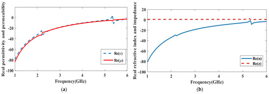 Retrieved results for: (a) relative permittivity ɛ and relative permeability µ; (b) refractive index n and impedance z.