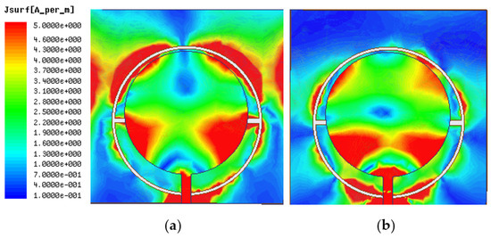 Current distribution of the proposed antenna. (a) 2.43 GHz. (b) 5.2 GHz.