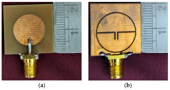 ESAs are antennas having certain defining electrical parameters proposed by Chu and then by Wheeler [1]. These parameters are derived mathematically from wave number ‘k’ = 2π/λ0 and spherical radius around the highest dimension of the unit cell ‘a’. Based on these values ESAs are defined using the mathematical formula ka < 1. Antenna designers find attractive features of ESAs—such as compactness of size, simplicity of structure, etc.—useful for developing compact antennas for modern applications [2,3,4]. ESAs also have certain disadvantages such as high reactance and low radiation resistance due to their small electrical size which in turn results in high quality factor (Q). In ESAs decrease of the value of electrical size ‘ka’ closely correspond to the decrease of parameters such as bandwidth, efficiency, and gain [1]. Use of defected ground structures [5,6] and metamaterials (MTMs) [7,8] are the two most commonly used methods for developing ESAs from conventional antennas.