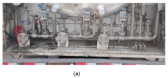 On-site tank car A. (a) Flange practicality picture. (b) Detection results of (a).