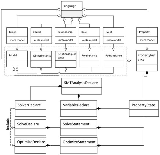 Based on the GOPPRRE formalism, the syntax of KARMA languages, which is one of the most powerful approaches to describe domain specific metamodels of products [], is used to describe metamodels and models. The detailed key concepts are introduced as follows:
