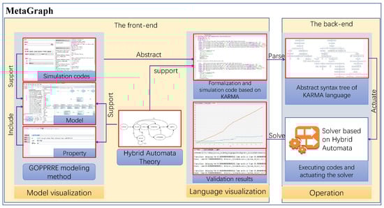 In this study, we use the KARMA language to support the development process modeling and the static and dynamic analyses of time consumption and cost for complex system development []. Moreover, within a multi-architecture modeling tool MetaGraph 2.0 (http://www.zkhoneycomb.com/; accessed on 8 February 2022 ), metamodels for the development process are developed based on ISO/IEEE 15288 and BPMN []. Furthermore, the satisfiability modulo theory (SMT) and the hybrid automata simulation (HAS) are used to support the static analysis of cost in each work task and the dynamic cost analysis of the entire development process.