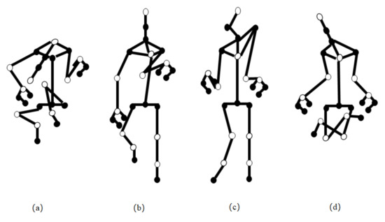 Four examples (a–d) of noisy skeletonized poses in collected activity sequences, which would be removed prior to encode the poses for discrete HMM on human activity estimation.