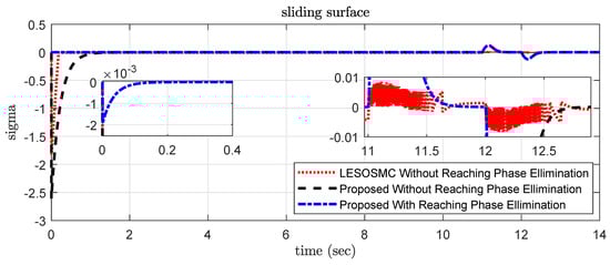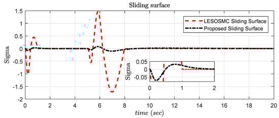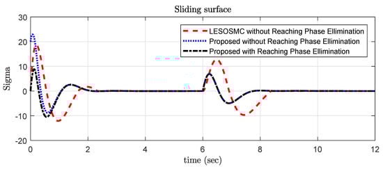 This sub-section deals with designing a stable modified sliding surface to eliminate mismatched disturbance of the system (1). Equation (23) shows that modified sigma’s dynamics do not depend on signum function, and hence, a considerable amount of chattering effect is removed from the traditional sliding mode controller. The estimated disturbance is used to design a stable sliding surface, and the control input is derived for tracking the system on the input trajectory.