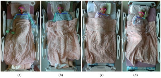 - Grimm, T.; Martinez, M.; Benz, A.; Stiefelhagen, R. Sleep position classification from a depth camera using Bed Aligned Maps. In Proceedings of the 2016 23rd International Conference on Pattern Recognition (ICPR), Cancun, Mexico, 4–8 December 2016; pp. 319–324. [Google Scholar] [CrossRef]