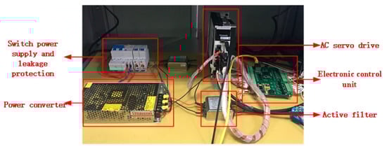 Based on the mathematical model of the EHA system, the experimental facility of the EHA was built. Figure 9 shows the structure of the experimental facility. It includes the motor control system shown in Figure 10, the hydraulic system shown in Figure 11, and the monitoring computer system shown in Figure 11.