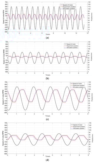 Figure 23 shows the simulation and the experimental results of the position output in the open-loop control at a different rotational speed.