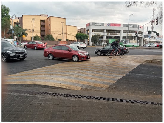 In some places of Mexico City, this huge speed hump is located, which had to be exaggerated in size to force drivers to slow down. Observe the car from a distance and the bicycle on the hump to have an idea of the dimensions of the obstacle. Although this image together with