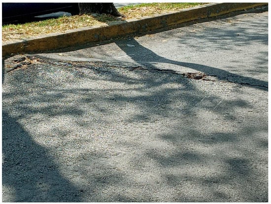 Somewhere in Mexico City. This is an example where a pothole turns into a “speed hump” caused by tree roots. Observe the sinking/uplift region.