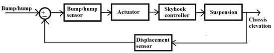 - Bakar, S.A.A.; Jamaluddin, H.; Rahman, R.A.; Samin, P.M.; Hudha, K. Vehicle ride performance with semi-active suspension system using modified skyhook algorithm an current generator model. Int. J. Veh. Auton. Syst. 2008, 6, 197–221. [Google Scholar] [CrossRef]
