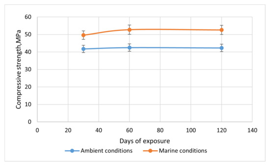 - The cylinder specimens that were exposed to hybrid exposures (28-day ambient curing followed by 3 months of immersion in artificial seawater) reported improved mechanical properties, specifically a 30% increase in compressive strength compared to the 28-day strength of 40 MPa.