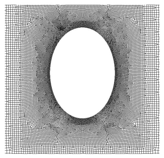 In this paper, CFD numerical simulation is used to obtain the steady-state pressure flow field of the bluff body section. The computational domain was rectangular with a blockage ratio of 0.9%. It is shown in Figure 7, where B is the length of the bluff body section. In order to keep the mesh from changing too fast, three computational regions were defined [31,32]. The rigid zone kept the mesh shape constant, outside of which the deforming zone underwent smoothing and remeshing. The outermost fixed zone was to satisfy the blockage ratio requirement. The details of the mesh are illustrated in Figure 8.
