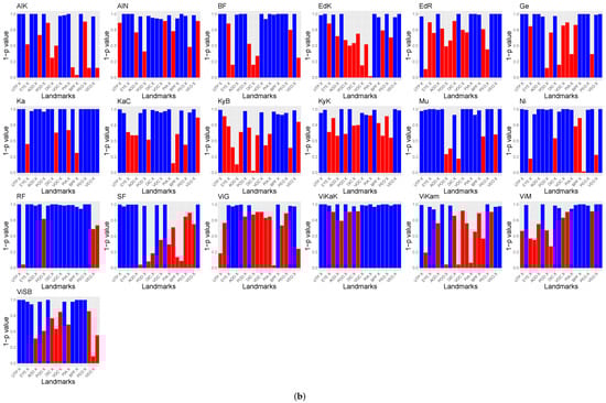 The application of the same models for structure investigation using the processed landmarks as well as the machine learning-based features may result in different population clusters. In genetics, this problem is tackled by seeking the optimal model using metrics such as cumulative ancestry contribution [] or the log marginal likelihood [,]. However, these numerical values must not be useful for the biological question, and several models may contain useful information about the visible diversity of the data. Furthermore, the numerical optimization may differ using different data pre-processing methods such as GPA or machine learning.