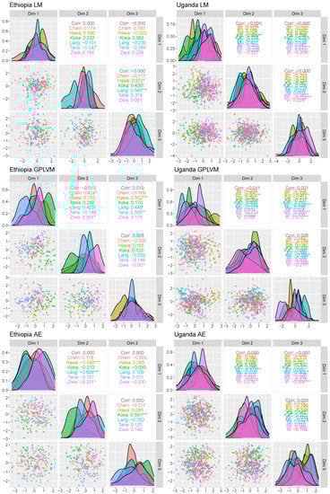 For the purpose of this study, the locations of the specimens were used to quantify the capability of the models to unveil meaningful structure. This approach was motivated by the previous work of [,], where the authors showed morphological differences for populations of Uganda and Ethiopia. However, if visible differences did not exist our approach would fail and no meaningful structure could be extracted.