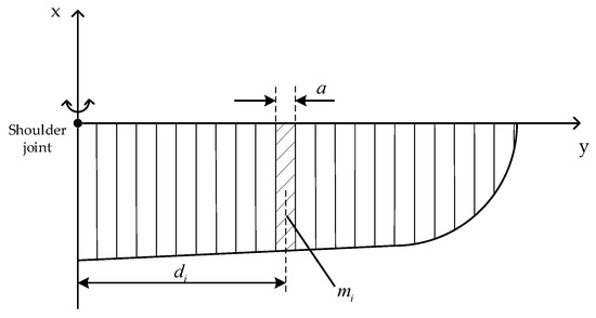 The inertia of a wing contains two parts; one is the inertia Iw of the wing itself flapping reciprocally around the flapping axis. As depicted in Figure 5, the wing is decomposed into n units of width a, and the distance of the centerline of the wing unit from the flapping axis is defined as di, and the mass of each unit is mi.