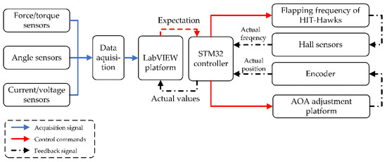 Block diagram of signal acquisition and motion control system principles for the wind tunnel experiment platform.