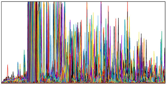 The Fourier transform bins of the z-axis of 1800 recordings all computed using the same FFT transform parameters.