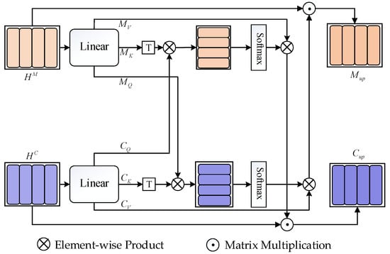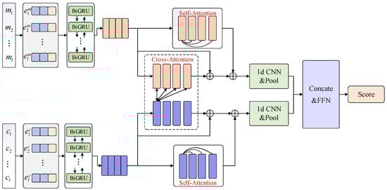 Although the self-attention module described above may efficiently utilize the intra-entity relationship, the relationship between mention and candidate is not explored. In this section, we model the inter-entity relationship through the cross-attention module, where the attention weights of mentions and candidates can be mutually learned to learn the close association between text features. This allows us to achieve more accurate matching results by learning the close association between text features.