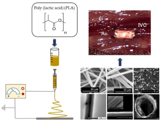 - Magiera, A.; Markowski, J.B.; Menaszek, E.; Pilch, J.; Blazewicz, S. PLA-Based Hybrid and Composite Electrospun Fibrous Scaffolds as Potential Materials for Tissue Engineering. J. Nanomater. 2017, 2017, 9246802. [Google Scholar] [CrossRef]
