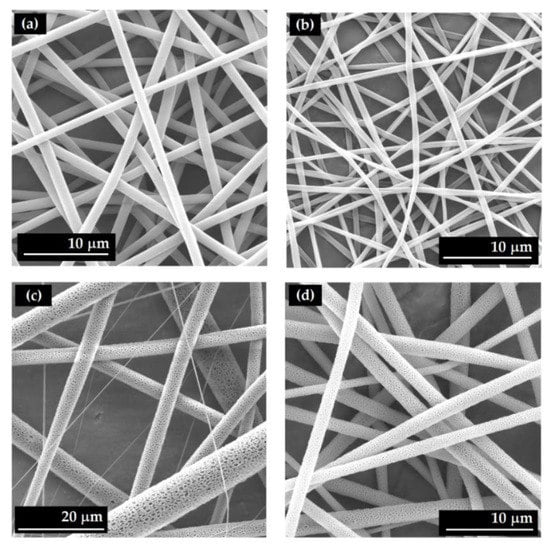 - Natarajan, L.; New, J.; Dasari, A.; Yu, S.; Manan, M.A. Surface morphology of electrospun PLA fibers: Mechanisms of pore formation. RSC Adv. 2014, 4, 44082–44088. [Google Scholar] [CrossRef]