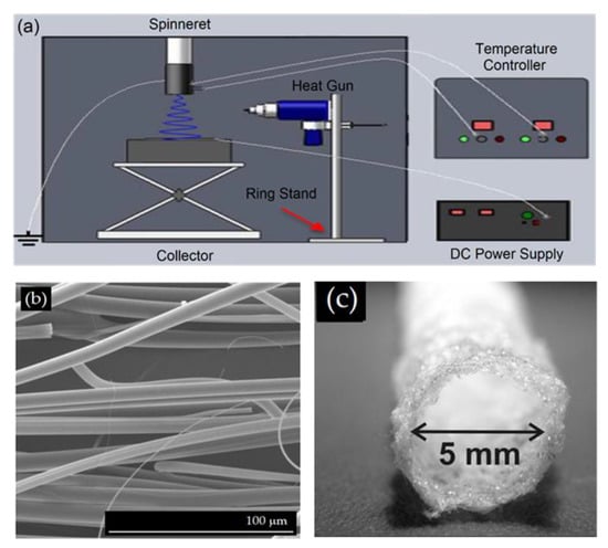 - Shih, Y.H.; Yang, J.C.; Shih, Y.H.; Yang, J.C.; Li, S.H.; Yang, W.C.V.; Chen, C.C. Bio-electrospinning of poly(l-lactic acid) hollow fibrous membrane. Text. Res. J. 2012, 82, 602–612. [Google Scholar] [CrossRef]