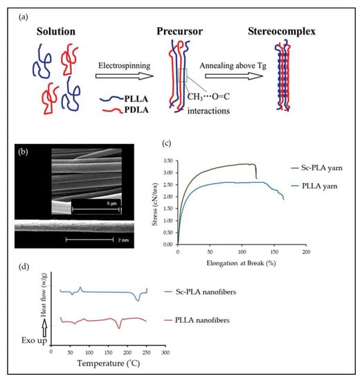 - Paneva, D.; Spasova, M.; Stoyanova, N.; Manolova, N.; Rashkov, I. Electrospun fibers from polylactide-based stereocomplex: Why? Int. J. Polym. Mater. Polym. Biomater. 2019, 70, 270–286. [Google Scholar] [CrossRef]