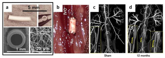 - Kurobe, H.; Maxfield, M.W.; Tara, S.; Rocco, K.A.; Bagi, P.S.; Yi, T.; Udelsman, B.; Zhuang, Z.W.; Cleary, M.; Iwakiri, Y.; et al. Development of small diameter nanofiber tissue engineered arterial grafts. PLoS ONE 2015, 10, e0120328. [Google Scholar] [CrossRef]